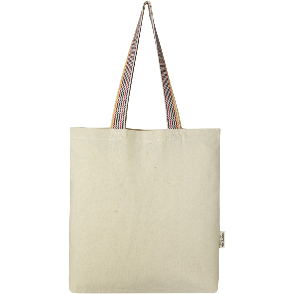 A Rainbow 180 g/m2-es bevásárlótáska a hagyományos pamuttáska frissebb változata. Ez az újrahasznosított pamutból készült táska 25 cm-es, szivárványszínű, szövött fülekkel és 3,5 cm-es széles talppal rendelkezik, amely egy kicsit több tárolóhelyet biztosít. Emblémázás: Szitanyomás