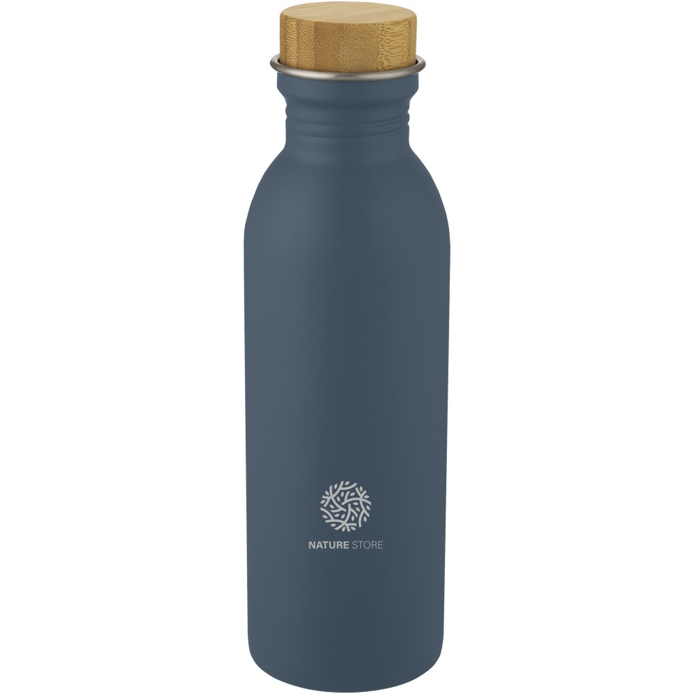 Egyfalú, 18/8-as rozsdamentes acél sportpalack bambusz tetővel. BPA-mentes, a német élelmiszerbiztonsági törvény (LFGB) szerint tesztelt és jóváhagyott. Ftaláttartalomra tesztelve és jóváhagyva a REACH előírásai szerint. A felhasznált bambusz fenntartható, környezeti és társadalmilag felelős forrásból származik. Szivárgásmentes. Szénsavas italokkal nem használható. Mosogatógépben nem mosható és mikrohullámú sütőben történő melegítésre nem alkalmas. Űrtartalom: 650 ml. Újrahasznosított karton díszdobozban. Emblémázás: Gravírozás