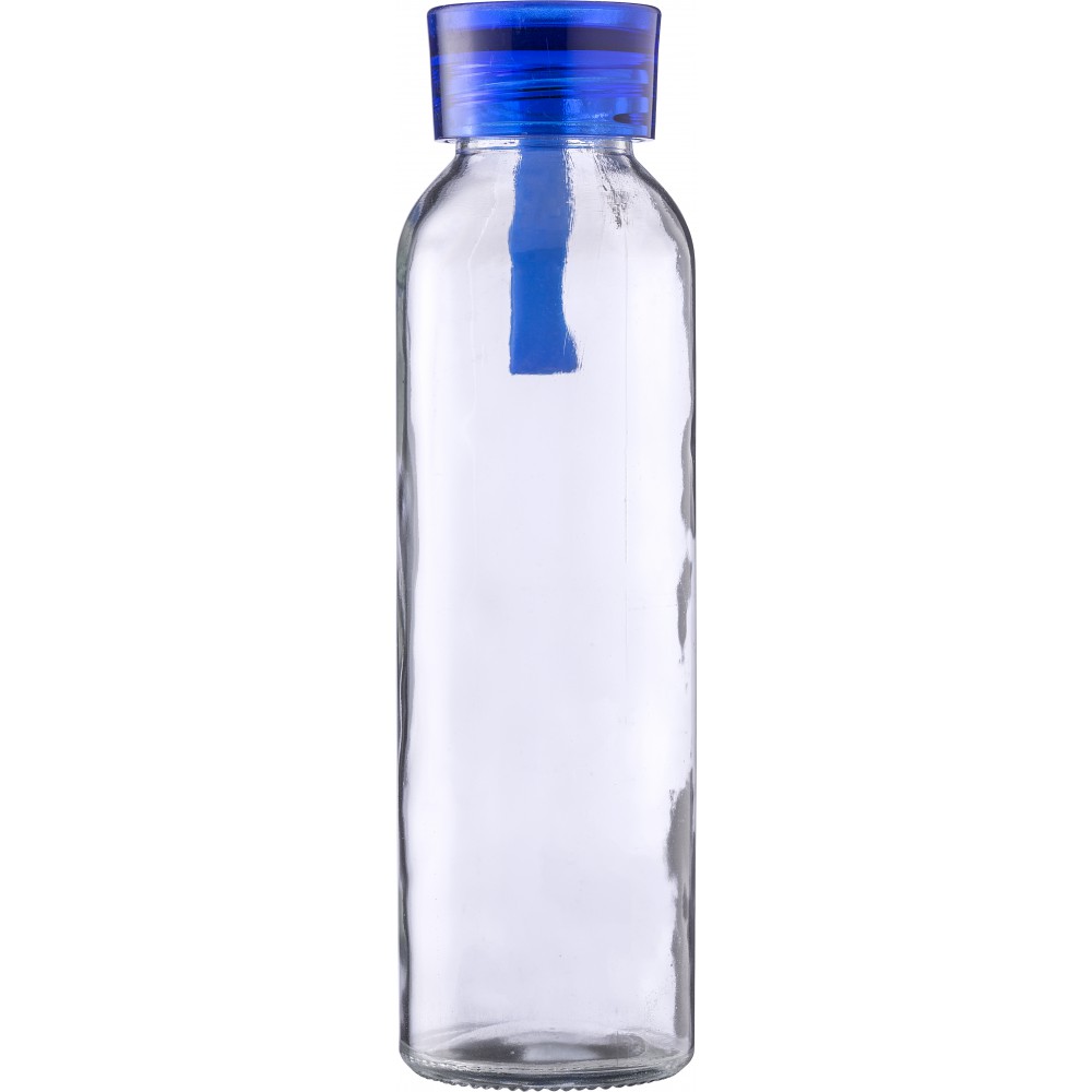 Üveg vizespalack színes kupakkal és pánttal. Csomagolása kraft papírdoboz. Űrtartalom: 500 ml. Emblémázás: Bögredekor