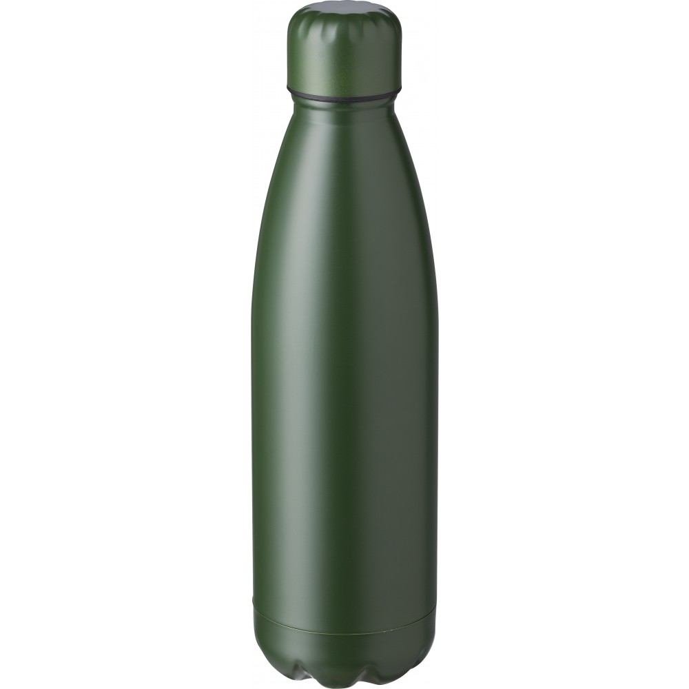 Rozsdamentes acél, szimplafalú palack matt bevonattal. Kristályszerkezet alapján belül 304-es, kívül: 201-es. Csomagolása barna papírdoboz. Űrtartalom: 750 ml. Emblémázás: Bögredekor, Gravírozás, Körszita
