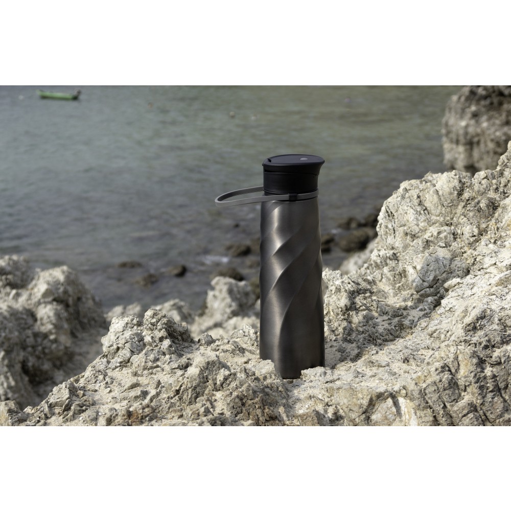 A Vortex Athletica ivópalack a magas funkcionalitást elegáns dizájnnal ötvözi, amely kihangsúlyozza a prémium anyagokat. Könnyű, egyfalú 18/8 rozsdamentes acélból készült, mindössze 238 g súlyú, és a tartósság a fő erénye. A fedél a könnyű tisztítás érdekében teljesen szétszedhető, a rugalmas hordozószíj pedig a személyes igényekhez igazítható. Ennek az 1000 ml-es rozsdamentes acél palacknak minden része mosogatógépben mosható. Emblémázás: Gravírozás
