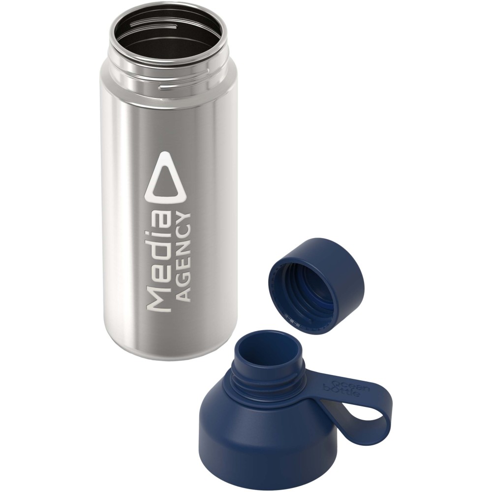 A 620 ml-es Ocean Bottle Lite könnyű kialakítású, 65%-ban újrahasznosított anyagokból készült, és karcsú, egyrétegű testtel rendelkezik. Minden Ocean Bottle 1000 műanyag palack összegyűjtéséhez járul hozzá, támogatva a part menti közösségek megélhetését. Az üveg újrahasznosított rozsdamentes acélt és újrahasznosított, óceánból származó műanyagot tartalmaz. A dupla nyílásnak köszönhetően könnyen tisztítható és újratölthető, a cseppmentes tető pedig praktikus hordozópánttal rendelkezik. Mosogatógépben mosható és BPA-mentes. Felelősen beszerzett, újrahasznosított kartondobozban szállítjuk. Emblémázás: Gravírozás